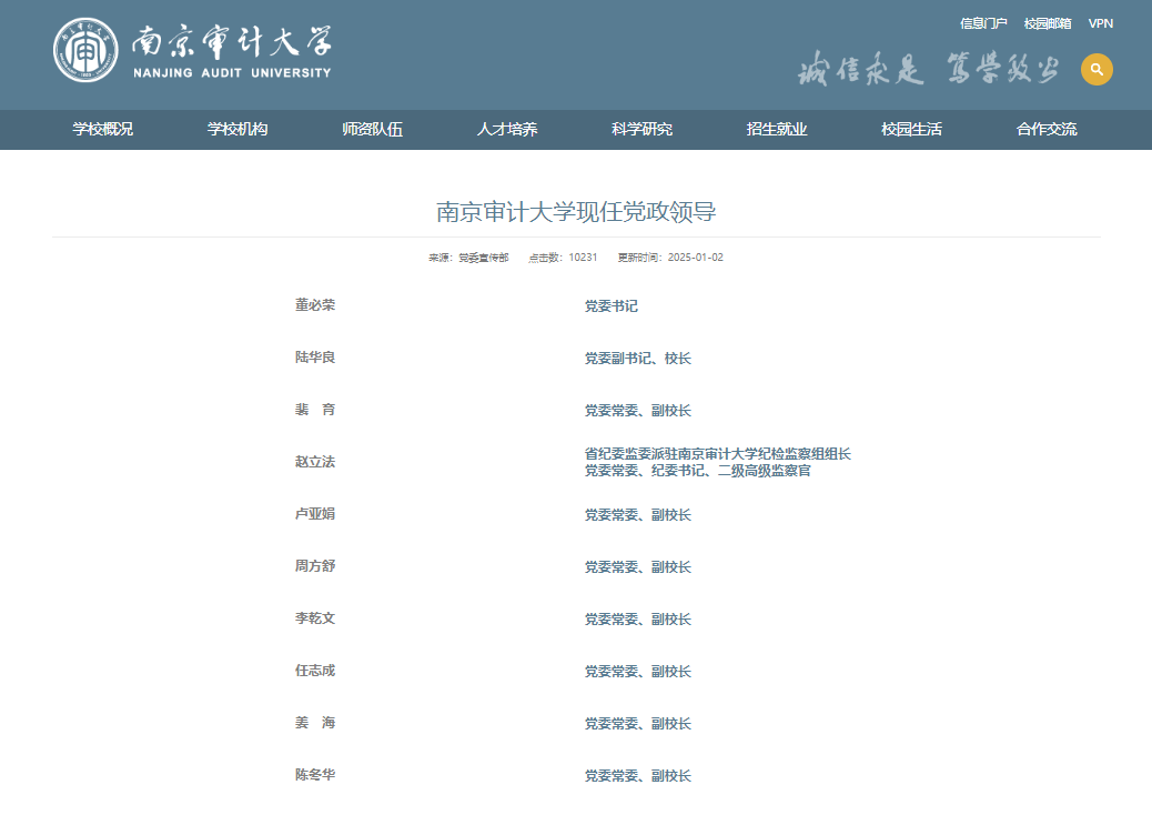 据2025年1月2日南京审计大学官网显示:陈冬华任南京审计大学党委常委、副校长。