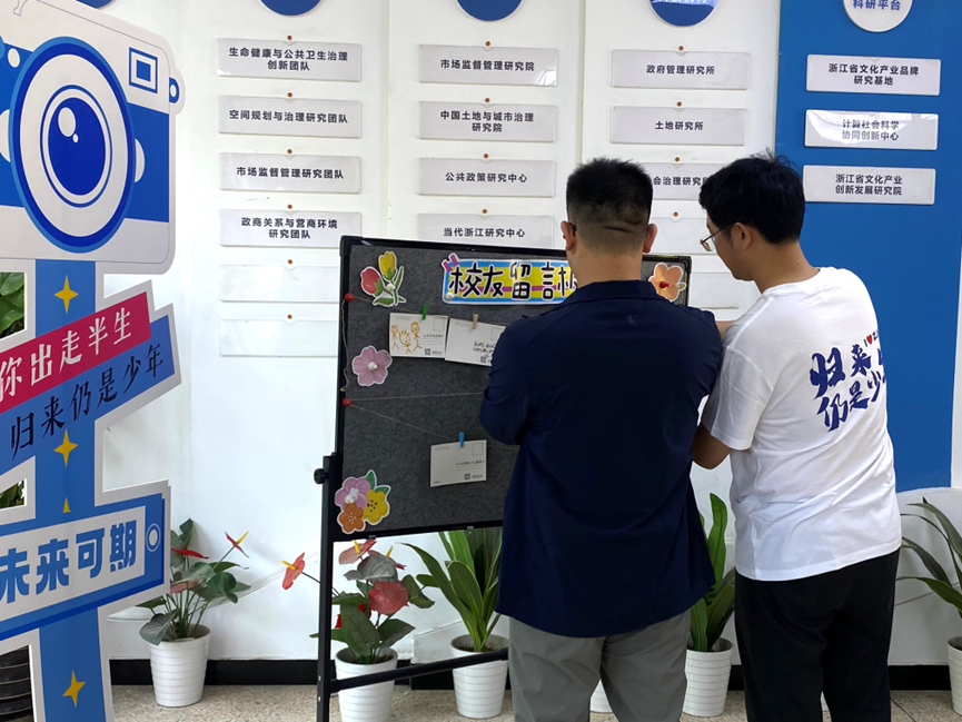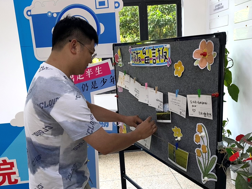 午间,校友们漫步生活园区与教学区,在寝室楼前驻足凝望,于学院留言板上挥笔寄情。有人写下“寝室夜谈趣事”,有人留下“母校芳华永驻”的祝福,更有人以“归来仍是少年”直抒胸臆,将思念化作文字,定格成时光的礼物。