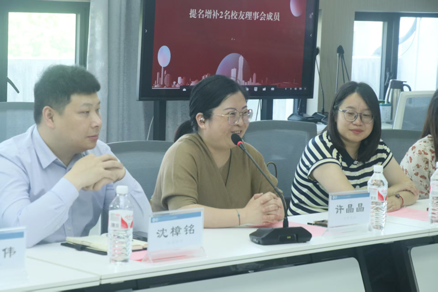 理事会上,经学院校友理事会会长沈樟铭提名,会议表决通过新增许晶晶和彭艳两人新增理事会成员议案。